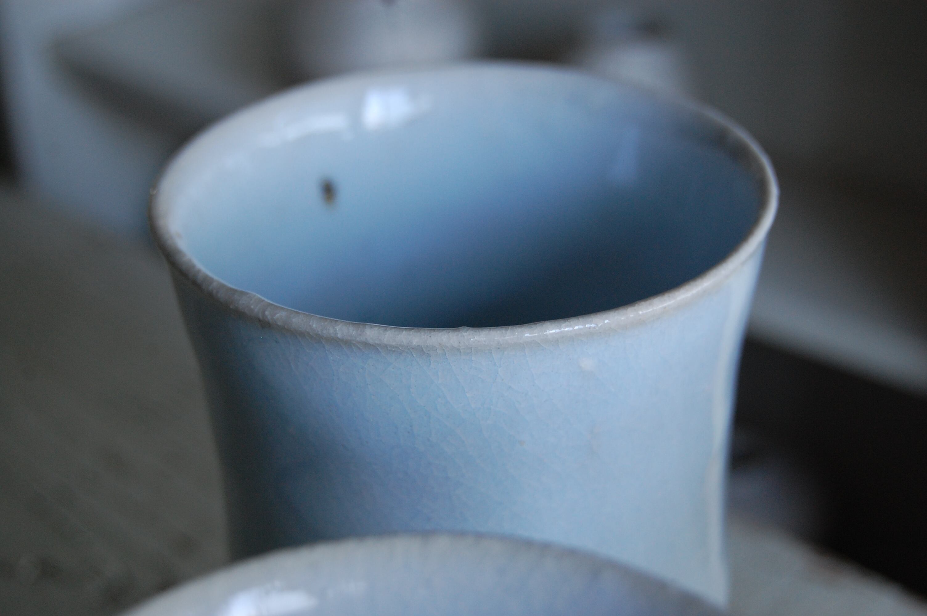 信楽の長石を多く含む土と萬古焼の白泥の土をブレンドして、天然の木灰で焼き付けています。